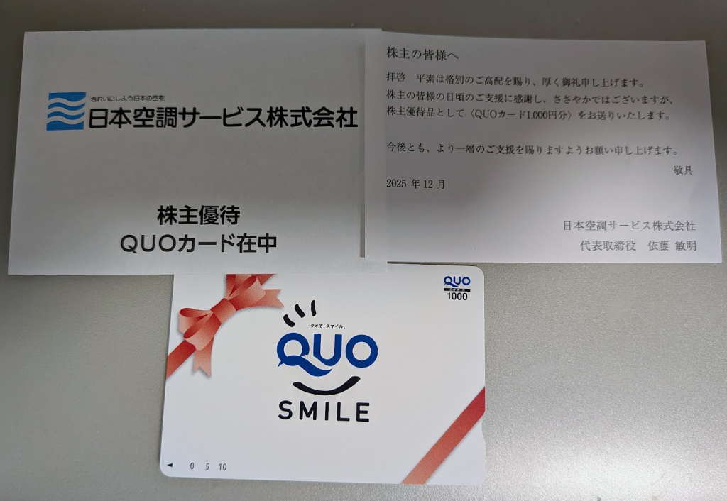 1000円分のクオカードを頂きました。オリジナルデザインではないものでした。