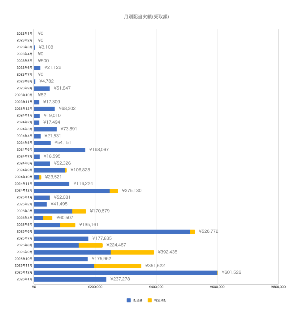 年初に特定分をNISA成長投資枠に移しましたが、今月受け取ったのは12月権利の分です。